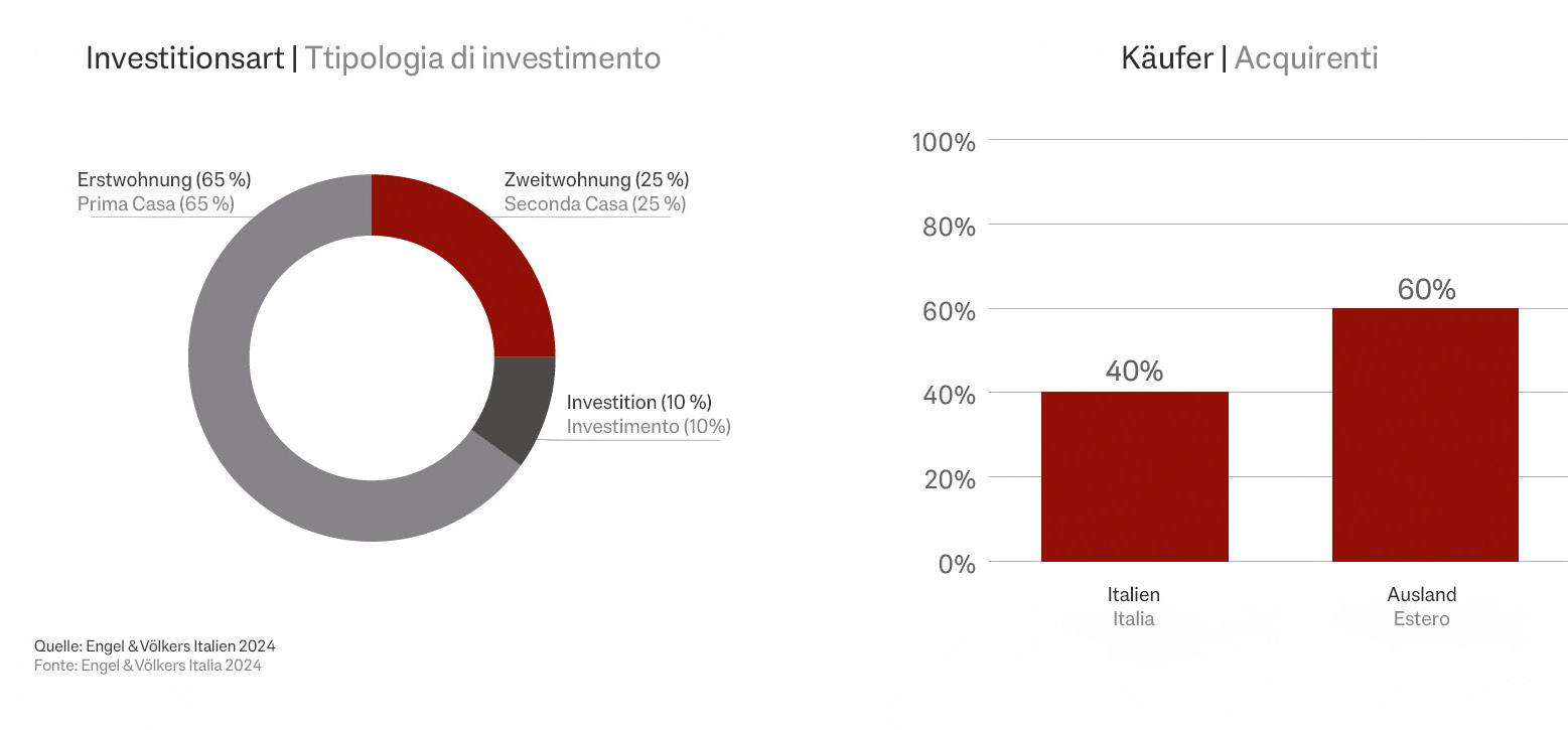 Merano registra una forte domanda dall’estero: circa l’80% degli acquirenti non è di origine italiana, e i prezzi si aggirano intorno ai 5.000 €/mq. A Brunico e Bressanone, invece, il 60% del mercato è rappresentato da acquisti di prime abitazioni, con prezzi decisamente variabili.
