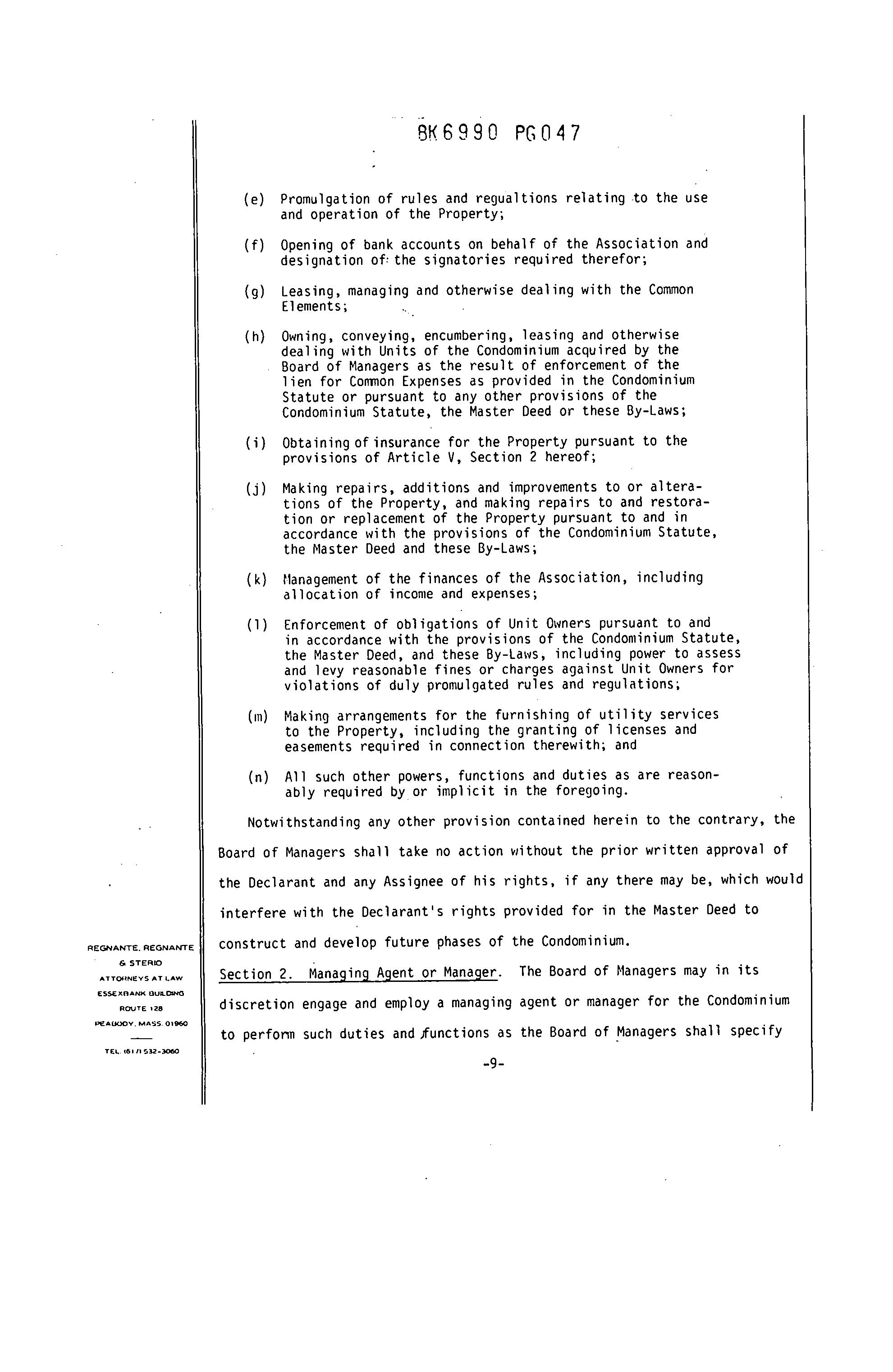 2) By deleting clause (d) in Section 9 of the Master Deed in its entirety and inserting in place thereof the following new clause (d):
