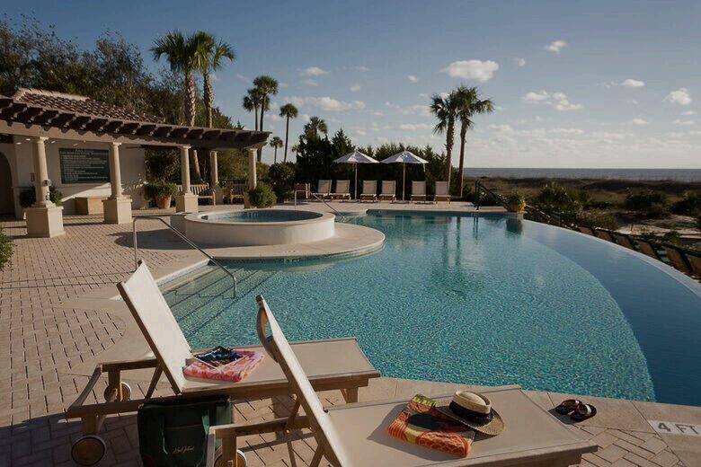 The resorts, Sea Island Beach Club and The Cloister, are located a short distance from one another, connected by a roundabout in the middle of Sea Island Drive, the island’s main connecting road. The oceanfront Beach Club contains restaurants, a game room, a bowling alley, an ice cream shop, a bar, and three pools. Sea Island’s main hotel, The Cloister, is located on its southwestern side along the Black Banks River. It includes restaurants, 200 rooms, a spa, tennis and squash courts, an exercise facility, and is home to the only Forbes Five-Star restaurant in the state of Georgia, The Georgian Room. It is the only resort in the world to have received four Forbes Five-Star awards for ten consecutive years.