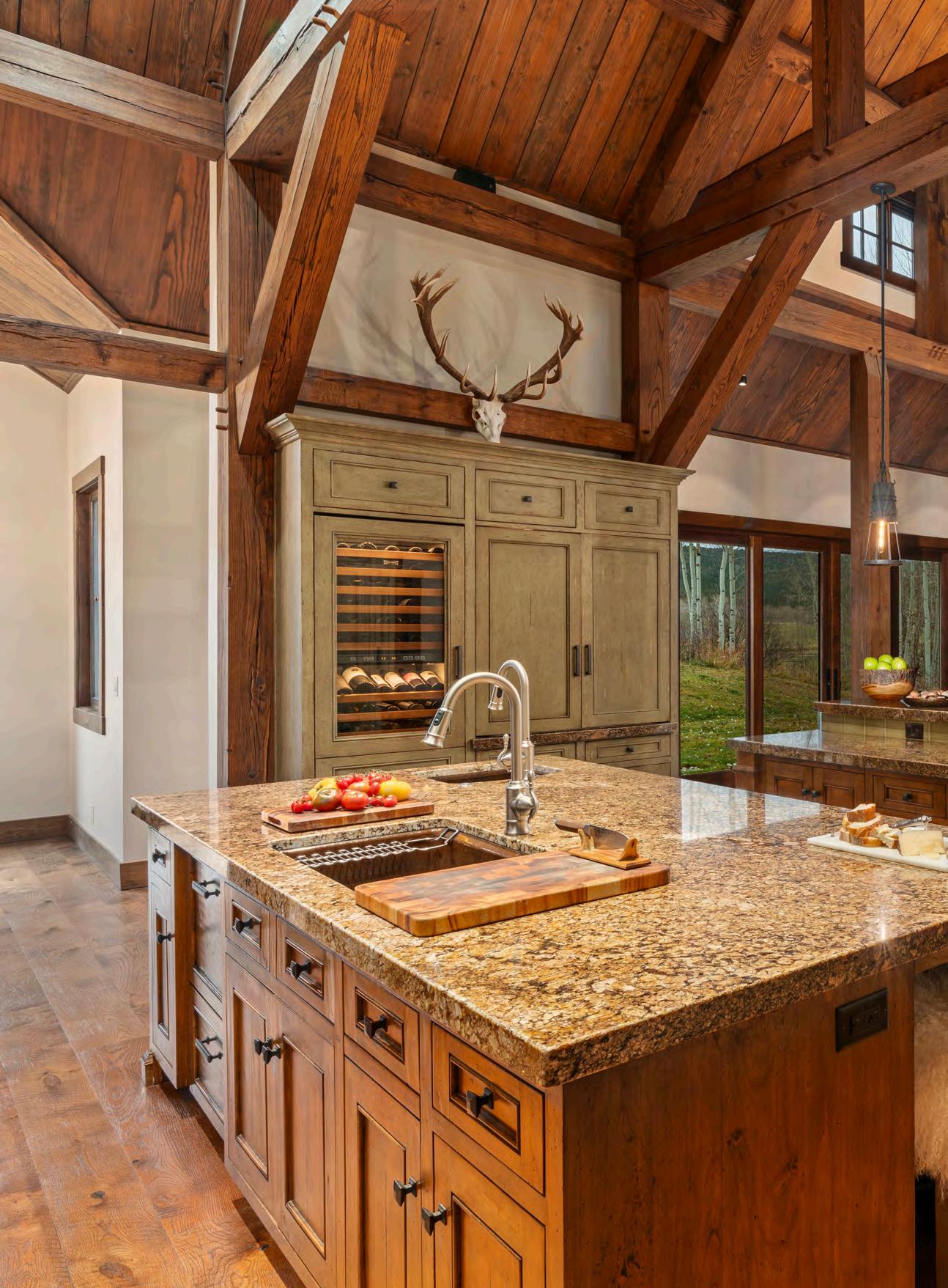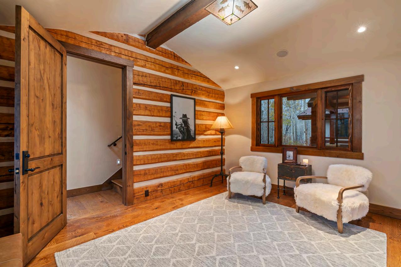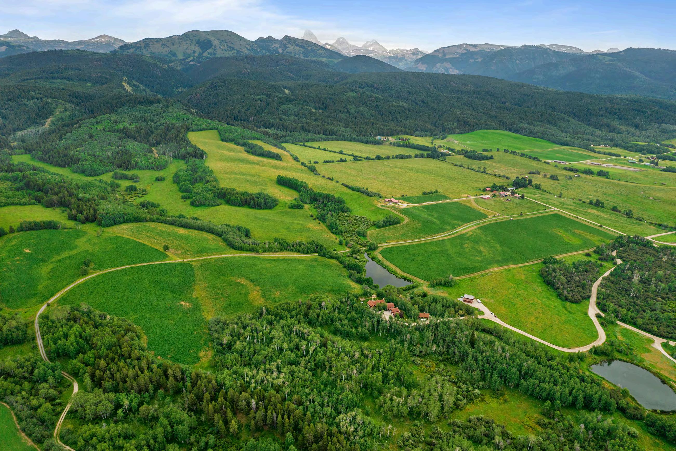 Set on a breathtaking 14.41 acres of pristine Teton wilderness, this rare offering features three miles of private, groomed trails winding past Kiln Creek - a trout-spawning ground - and offering daily encounters with abundant local wildlife. The main residence, encompassing 5,981 square feet of meticulously crafted living space, balances the rustic authenticity of massive, high-quality white oak log construction with refined, modern elegance.