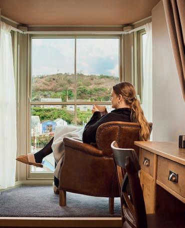 St Austell’s classic ales shine seaside. Tribute is a crisp, citrus-bright pale ale that pairs with fish and chips. Proper Job brings assertive hops for those cliff-path appetites. If you’re keeping it easy, lagers and lowalcohol options appear alongside seasonals; ask the team what’s pouring fresh. Then, at the end of each day, sink into sweet slumber in one of the pub’s cosy guestrooms. Whether you’re chasing sunsets or sheltering from a squall, a visit to a Cornish pub proves the best memories often come with sandy paws curled at your feet and the sea just beyond the glass.