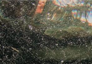 tilts the work’s elusive legibility towards us. Cars transport passengers in a protective shell. Remove that and interfere with the windscreen, and any imagined journey would be perilous. Or has a calamity already occurred? Thrill-seeking DIY car racing in rural towns, manoeuvres that throw stuff onto the windscreen and scar the road with skid marks. Collisions, waste and loss become possible outcomes. But Bowman withholds as much as she gives, preserving a private space for the artist in her own creation. Only in the gallery label is horsehair mentioned as the source of those mysterious strands, a material Bowman has collected as avidly as smashed autoglass, swept from city pavements and recrafted into glittering ornaments, like competition daredevils’ trophies.