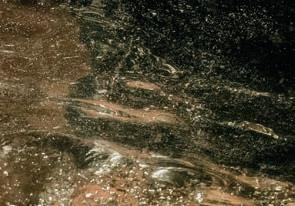 Martin depicts these resources as integral to a region’s livelihood. The duchy’s rich metal and mineral endowment was mined by a poor community to power a dominant global empire. Wall-mounted nearby are two largescale images titled Black Rock (2018). They assume the grand scale of portraiture, a genre traditionally reserved in art for the great and famous. astly magnified to the