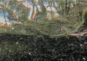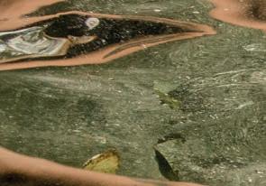 Most incongruously of all, the pool appears indoors, surrounded by the ceiling, walls, lights and stout wooden beams and columns of the gallery’s bold design. Extending that ambiguity are puzzling details muddled in with the stones plastic-covered wire, ducting and other hard, shiny synthetic substances. A length of vinyl tubing snakes, creature-like, towards the centre filled not with free-moving, aerated water but a static watercolour painting. Artist Rachael Champion created the installation especially for this show. he is used to working with public locations and often relates the physical make-up of her work – its look, position and materiality – to the ecology of modern environments, its angular architecture as well as its hills and trees.