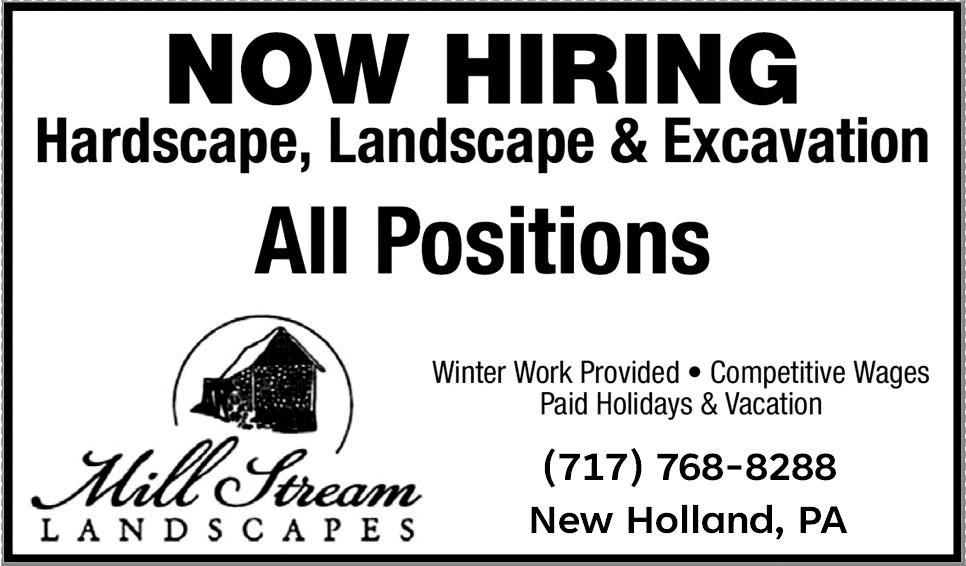 14- PENNYSAVER - Conestoga Valley Edition - October 4, 2023 townlively.com R100345 LANCASTER POST OFFICE IS CURRENTLY HIRING ALL QUALIFIED APPLICANTS! Openings Available at LANCASTER: • City Carrier Assistant $19.33 up to $38.66 per hour • Rural Carrier Assistant $19.94 per hour + (85¢ per mile reimbursement for POV) • Assistant Rural Carrier $19.94 per hour (Scheduled to work Sundays and Holidays only. May volunteer Monday through Saturday) We Offer Our Team Members a Variety of Benefits: • Competitive Pay & Reimbursement • Health, Dental, Vision & Life Insurance • Paid Sick, Vacation & Federal Holiday Leave • Opportunity for Career Development & Training • Regular Salary Increases, Overtime, Night/Sunday Premium, Cost of Living Adjustments usps.com/careers https://about.usps.com/careers/working-usps/benefits.htm FAIRMOUNT HOMES INVITES YOU TO JOIN OUR CARING TEAM! “Dedicated to Faith, Family & Community” “All applicants must support the mission & values of Fairmount” 333 Wheat Ridge Dr., Ephrata, PA 17522 Ph. 717.354.1800 Fax 717.354.1844 Applications can be submitted on our website: www.FairmountHomes.org R100449 v Licensed Practical Nurse (LPN) - 24 hours/week, evening shift v Weekend Licensed Practical Nurse (LPN) - 2 12 hour shifts, day shift v Weekend Registered Nurse (RN) - 2 12 hour shifts, day shift v Certified Nursing Assistant (CNA) - FT and PT, evenings and nights www.OregonDairy.com Applications available at our website or 2900 Oregon Pike, Lititz, PA R100457 • FT/PT Milk Processing Manager • Deli Associate • PM Kitchen Supervisor NOW HIRING NOWHIRING NOWHIRING Part-Time & Full-Time Benefits - 401(k) - Flexible Hours R100471 Call 717-806-0991 or e-mail to apply customerservice@caulercontainers.com CDL Driver, Diesel Mechanic & Loaders START IMMEDIATELY R100486 FARM MARKET Snack Shack PT Soup & Salad Clerk FT/PT Experienced Meat Cutter FT Meat & Food Productions FT Deli FT Produce Stocker FT Dairy Stocker FT Bakery Production FT Night Shift Bakery Production SMORGASBORD Host/Cashier/Bussers FT/PT Dishwashers/Janitorial FT/PT Salad & Dessert Supervisor FT Salad & Dessert Dept. Cooks/Buffet Housekeeping Supervisor Dishroom Supervisors Banquet Servers On Call Saturday Only Positions GIFT SHOP Area Manager FT Cashiers PT SERVICES RENDERED AFFORDABLE CONCRETE New • Repairs • Replacement 30+ yrs. exp. Call: 717-224-8603 AFFORDABLE PAINTING Interior • Drywall repairs • Custom colors. Ask about our Fall &Winter Specials! Call Damien 717-940-5912 PA032157 Let us