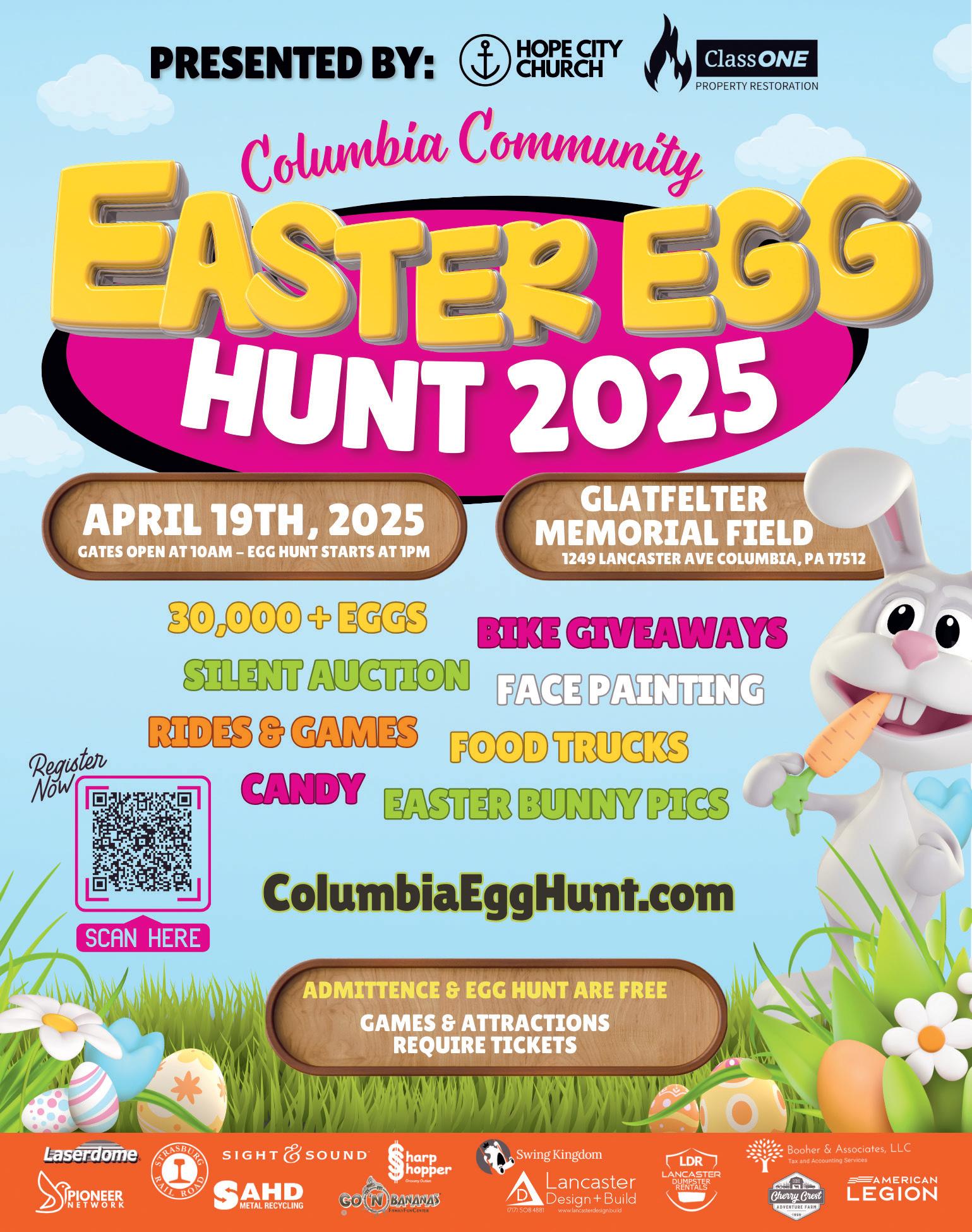 For a fun-filled, family-focused experience, head out to Egg Fest. The event, organized by Wrightsville Assembly of God, will be held in the parking lot of Eastern York High School, 720 Cool Creek Road, Wrightsville, on Saturday, April 19. It will run from 9 to 11 a.m.