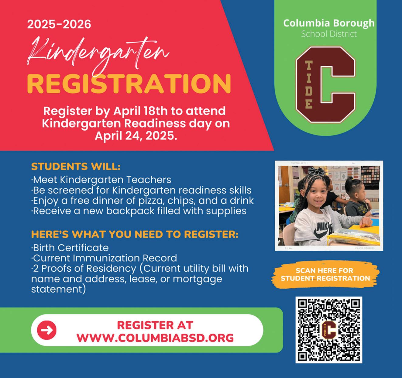 Columbia Borough Police spring cleanup, which will run from 8 a.m. to 4 p.m. Columbia Borough employees and community volunteers will work together to clean streets, sidewalks and parks. A large appliance collection will also take place during the cleanup, with tags for sale at the Columbia Borough office, 308 Locust St. For more information on the cleanup, contact Pam Armold at 717-684-7735 or armoldp@columbiapd.org.