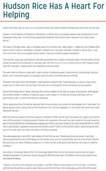 Good Sam has locations across Lancaster and Chester counties and every day serves about 300 people who are in crisis. “Our mission is to respond with compassion to individuals and families who are experiencing homelessness or are at risk of homelessness,” Shelley said. Anyone who needs assistance from Good Samaritan Services can go to https:// goodsamservices.org. A Good Sam representative will conduct a screening via a phone call to determine if the organization can help.