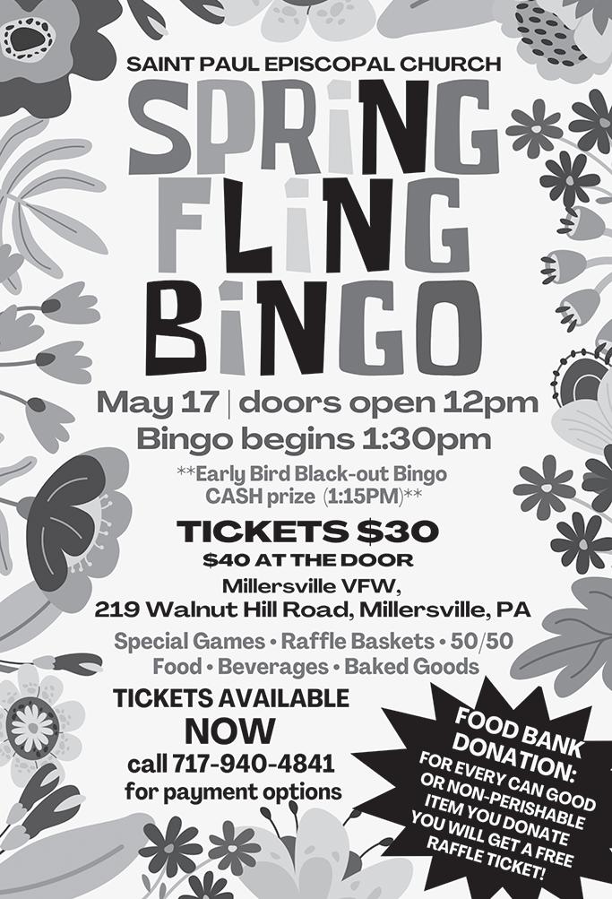 The Eastern York Band Boosters will host a family-friendly cash bingo event on Saturday, May 10, at 4 p.m. in the cafeteria at Eastern York High School, 720 Cool Creek Road, Wrightsville. Doors will open at 3:15 p.m.