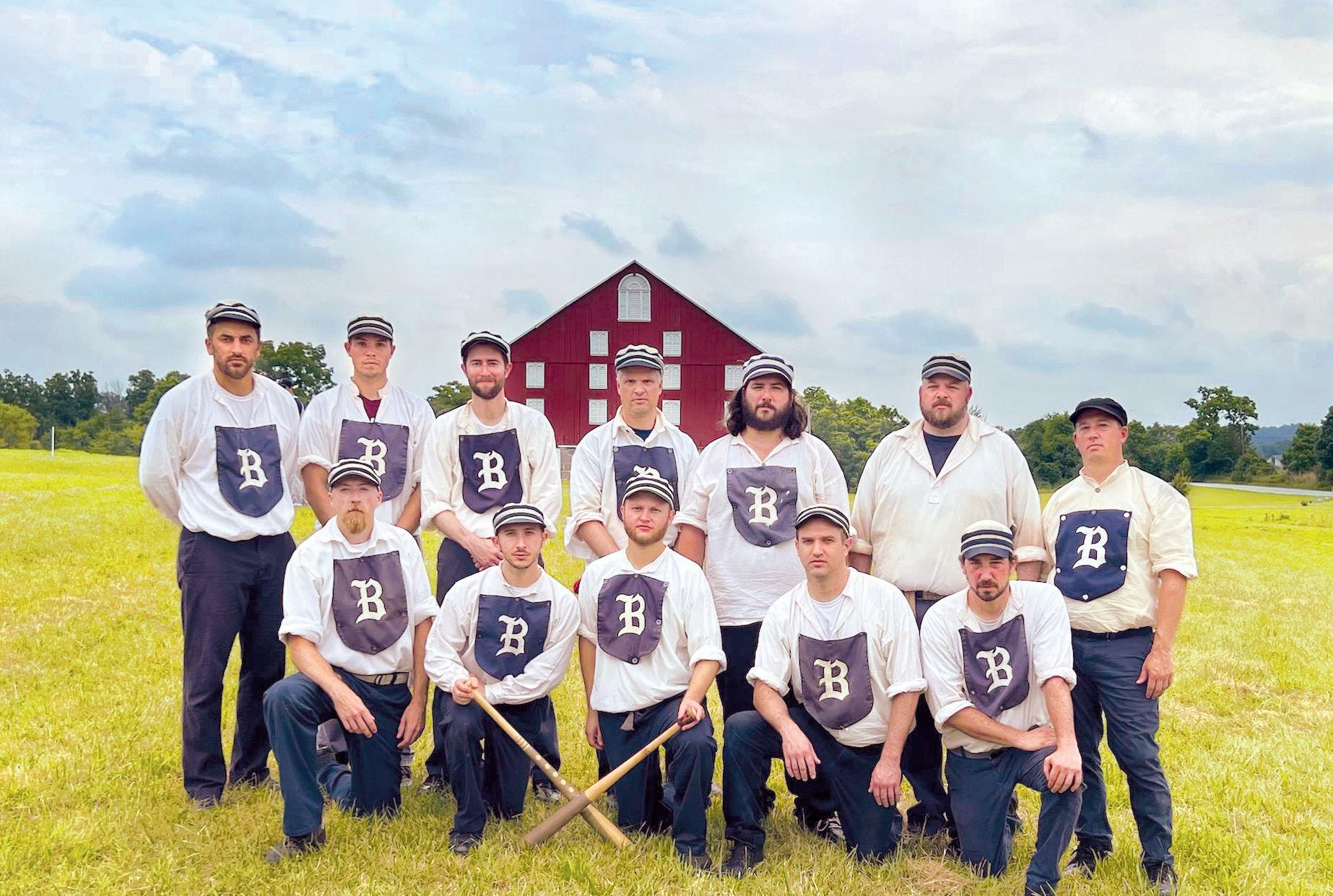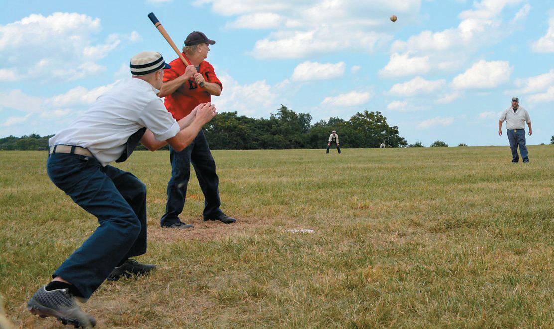 Players dress in period attire, use homemade wooden bats and play the game of “base ball” without wearing gloves.
