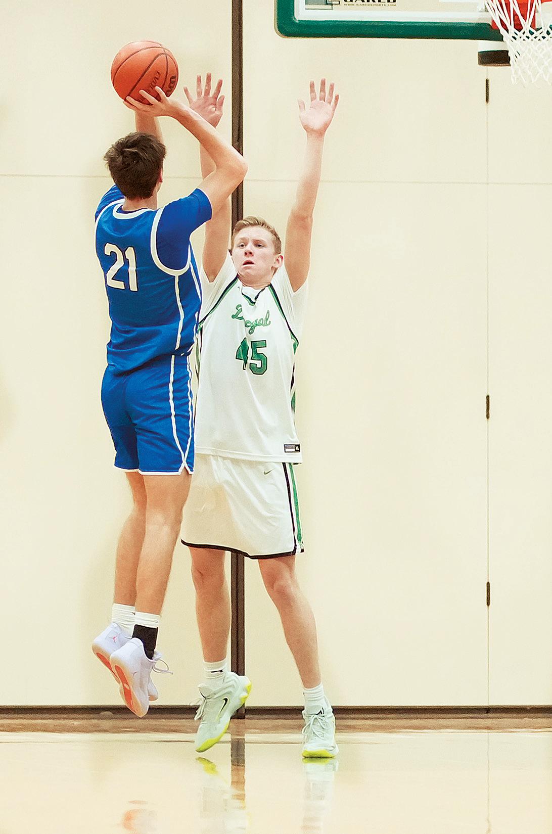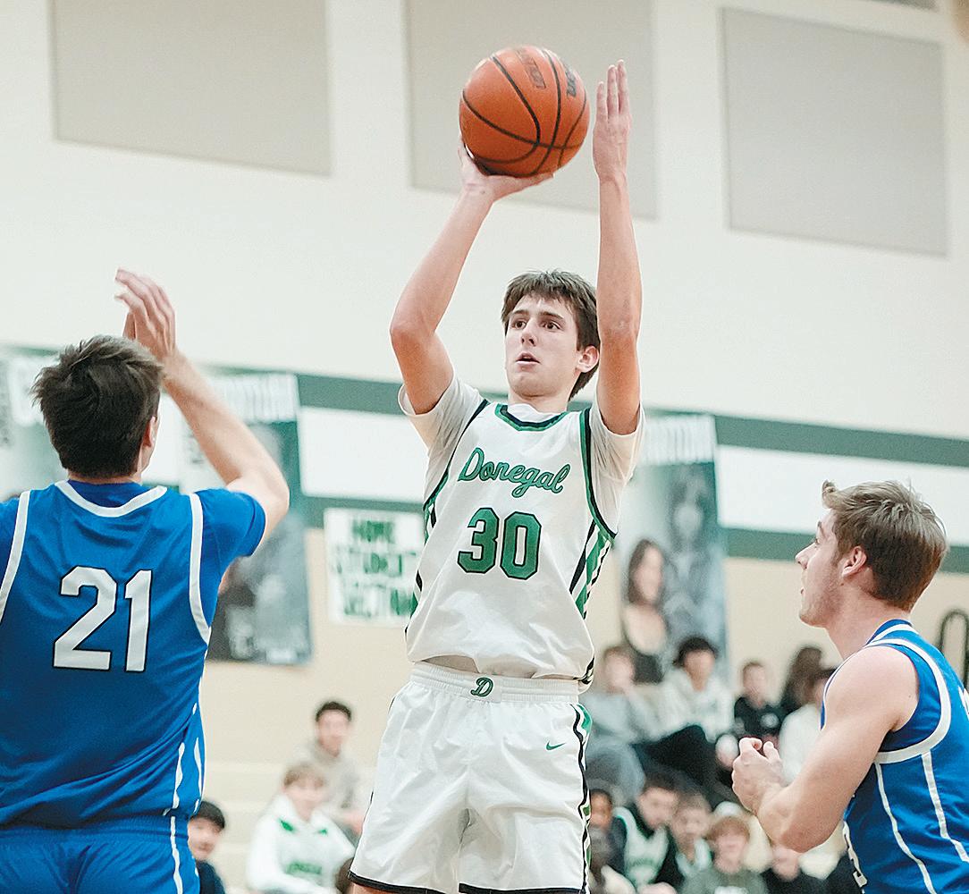 Wes Binkle of Donegal goes up for the jumper against Elizabethtown on Monday, February 2, during a 33-28 loss at home.