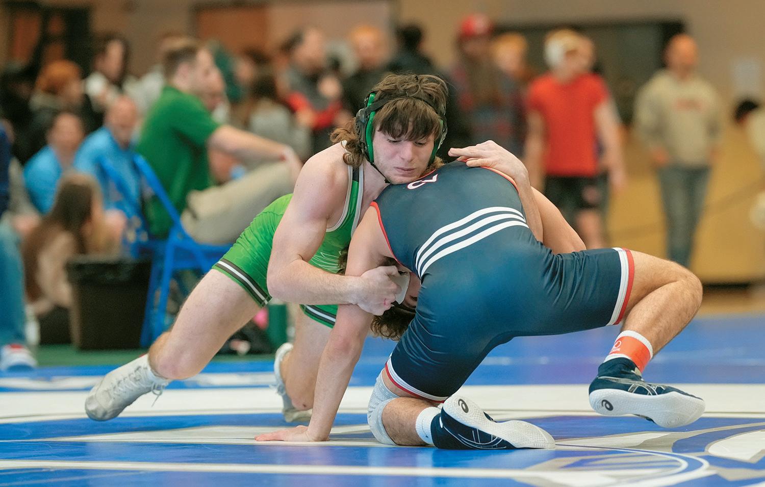 Indian’s Sergio Garcia holds off Harrisburg’s Rajohn Rodriguez during the PIAA 3A Regionals on Friday, February 21, at Spring Grove. Templin claimed fourth place in the 189-pound weight class.