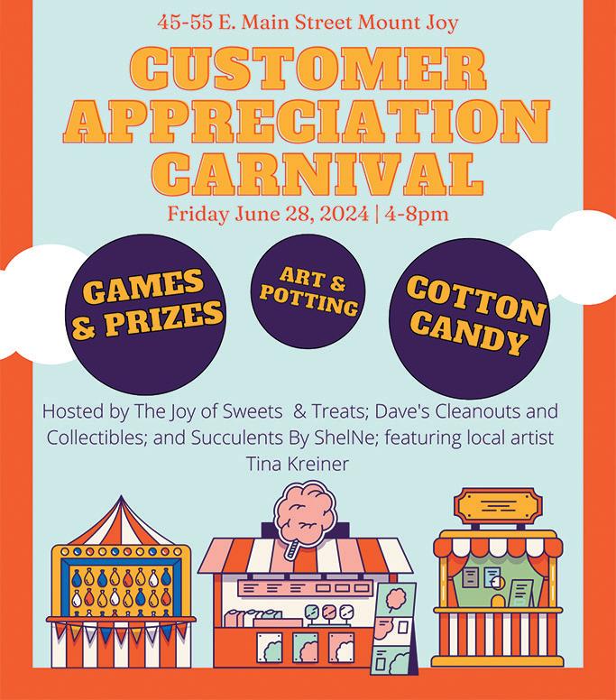 community event showcasing the sport of dock diving, from 10 a.m. to 7 p.m. both days at 151 Orange St., Mount Joy. People are invited to bring their dogs to try the sport or to enjoy the other canine participants.
