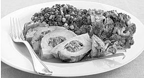 The menu will feature homemade oven-baked baconwrapped pork loin stuffed with savory apple sausage, pork gravy, gourmet cheese potatoes, sweet and sour saucy green beans, tossed salad, homemade soft dinner rolls with butter, desserts and drinks.