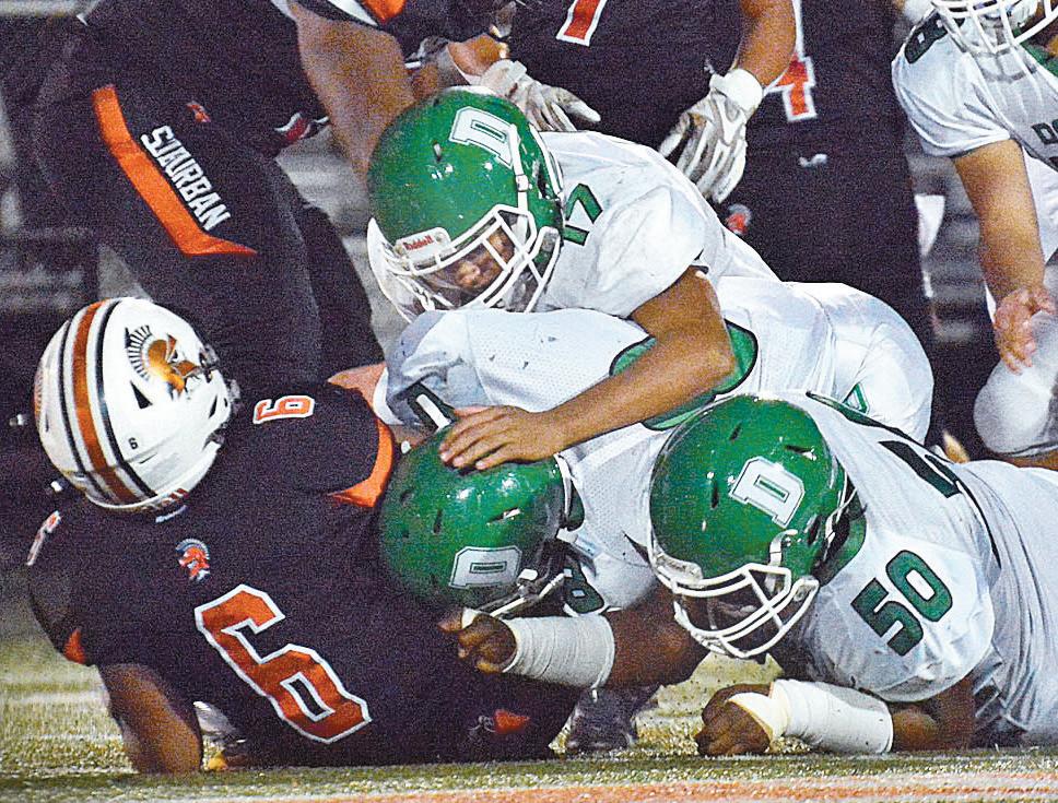 dash to give York Suburban (7-4) a 14-0 lead in the first quarter. The Trojans had taken over after a blocked field goal.