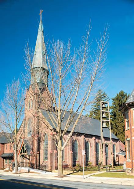 The first church building was a simple log house. In 1805, the log structure was replaced by a brick structure, which was eventually razed in 1886, making way for the present building. The current building underwent two major interior renovations, with the first being in 1921. The second renovation was completed in 1946 in celebration of the congregation’s 175th anniversary. It was at that time that the beautiful stained glass windows depicting the saints were installed.