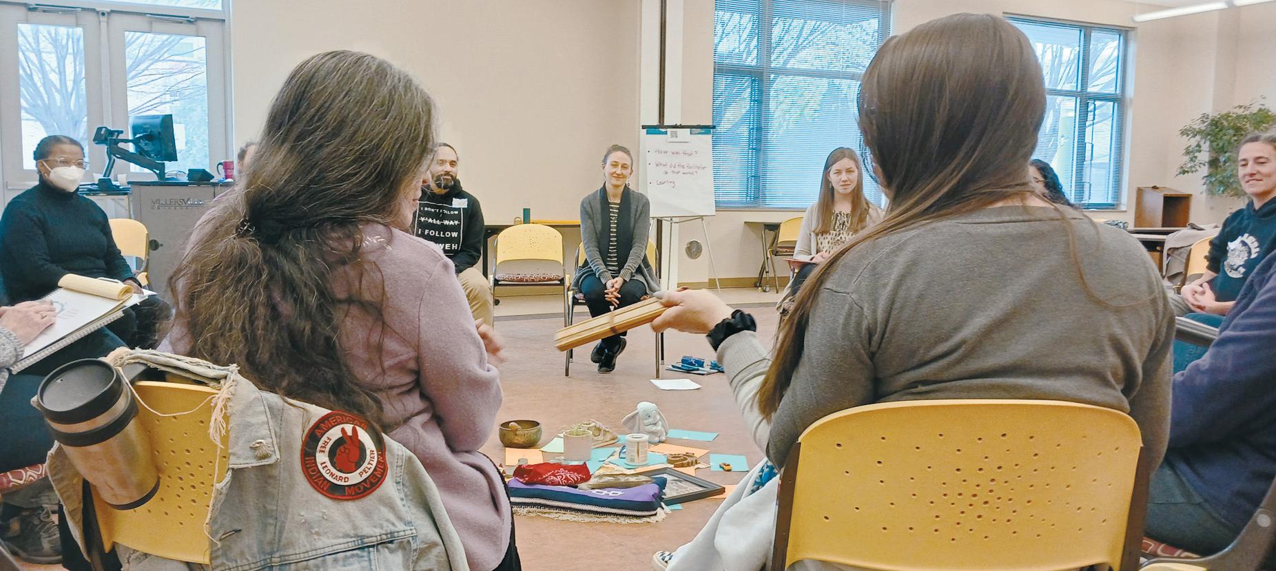 People participate in Advoz Circle Process training, a facilitation style often used in restorative schools.