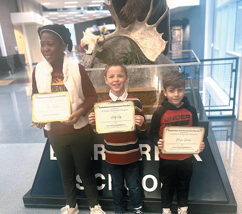 Bear Creek Elementary School students who were honored are Maverick Eves, who was recognized for quietly leading with kindness and lifting up others daily, as well as Anika Heistand, who proactively helped others and kept the classroom tidy. Mason Grimes was honored for leading by example with kindness, focus and respect.