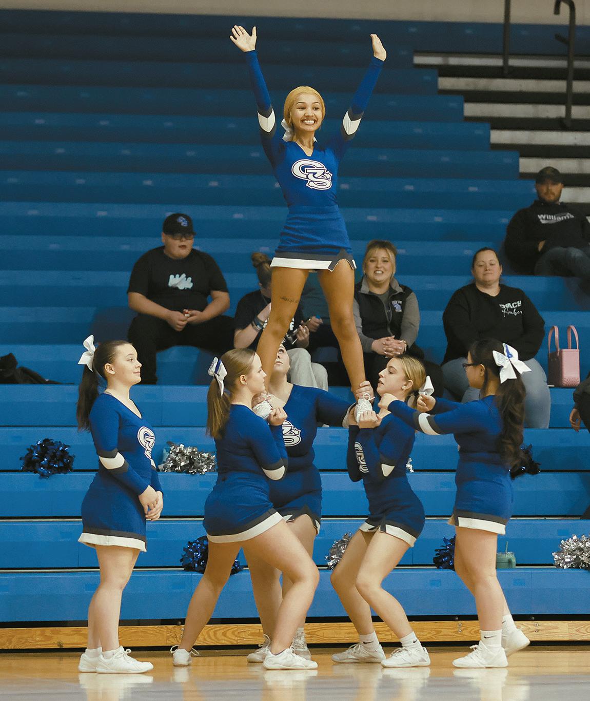 The Garden Spot cheerleaders perform during a timeout against Warwick in a 65-53 loss on Wednesday, February 4.