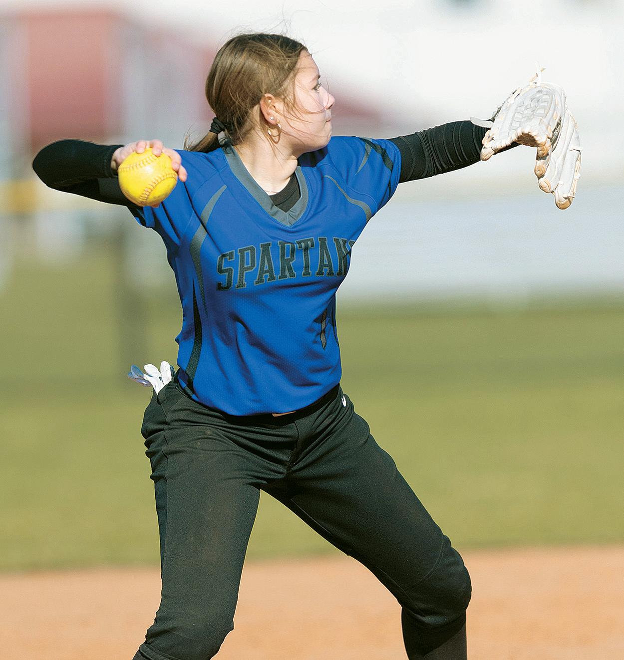 Spartan’s Niveyah Crabb throws to second for the out in New Holland against Conestoga Valley during a 13-1 loss on Friday, March 21.