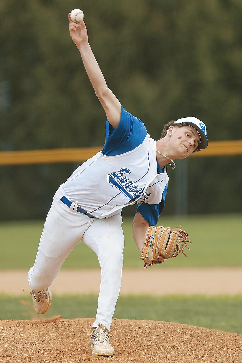 Friday, April 25, Garden Spot’s first baseman, Zander Clymer, makes a snag for an out against Warwick during a 12-4 victory in New