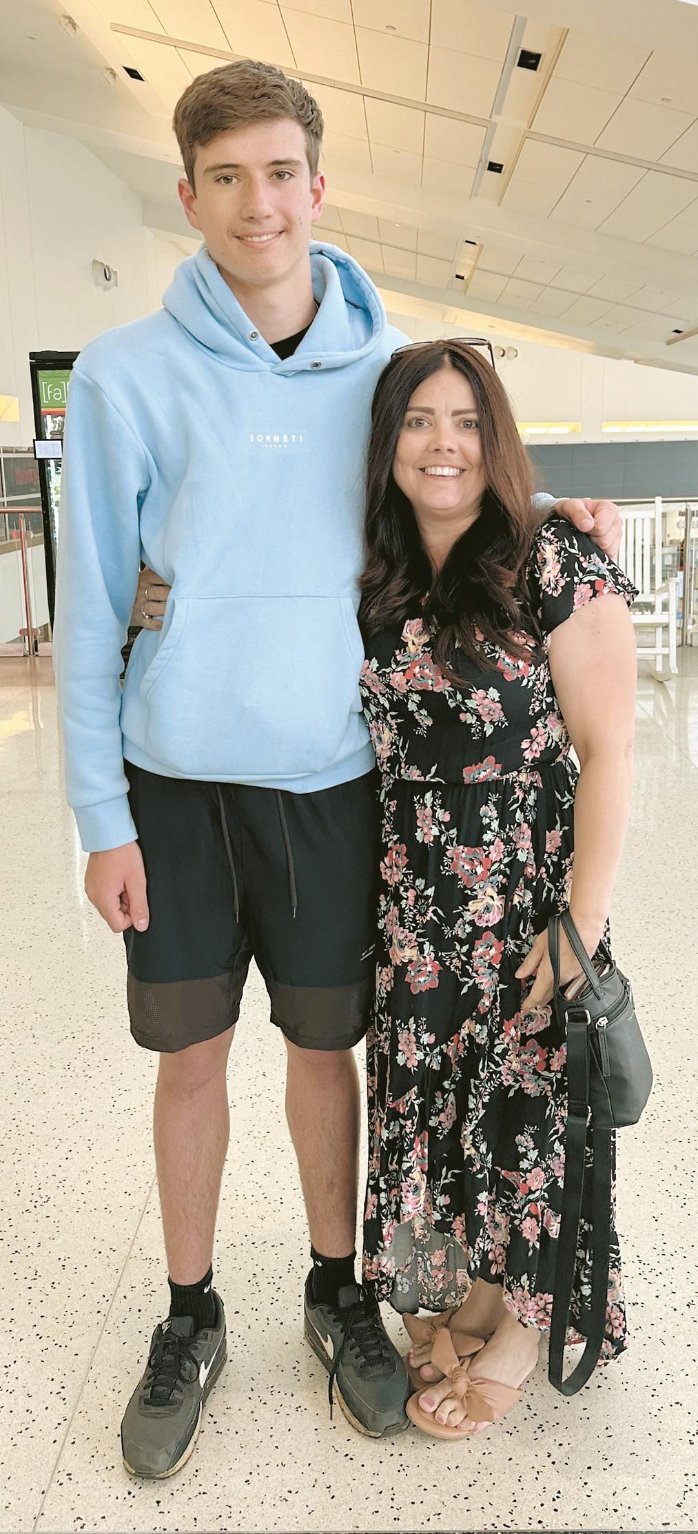 SHARE! exchange student Tim Duellberg (left) said goodbye to host mom Shannon Portales when he returned to Germany in June.