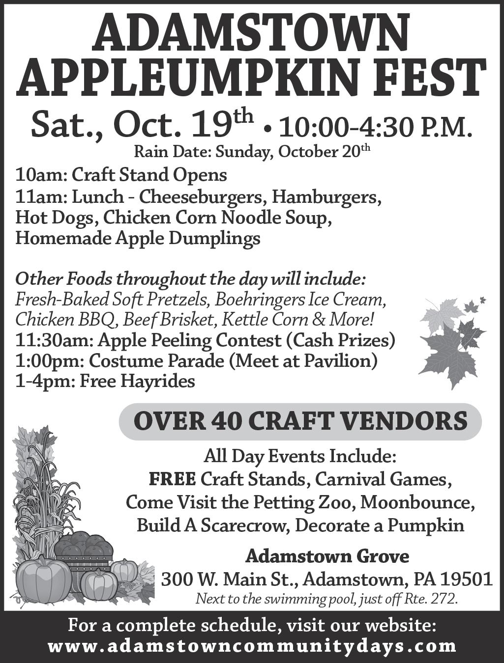 New Holland Church of the Nazarene will hold a Community Fall Festival on Saturday, Oct. 19, from 2 to 4 p.m. at New Holland Community Park, located on East Jackson Street. Activities will include a Trunk or Treat, inflatables, carnival games, and food. The event is free of charge, and people of all ages are welcome. Attendees may wear costumes.