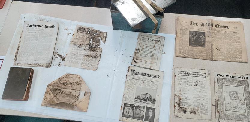 “The time capsule had been placed on June 26, 1922, at the original placement of the cornerstone,” explained Sarah Voran, a member of the EUM Futures team. “We were able to remove it and examine its contents.”