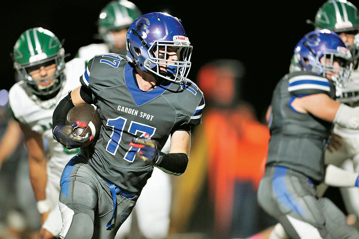 Leading the Garden Spot offense was quarterback Kye Harting, who threw for 180 yards on 19 completions, including two touchdowns. Harting also ran for 93 yards on 12 carries, scoring a rushing TD as well. Blake Weaver also scored a rushing TD as he gained 60 yards on nine carries.