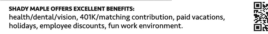 PENNYSAVER - Garden Spot Edition - November 23, 2022- 15 townlively.com R089998 R089415 Berry is an equa l opportunity emplo yer is an equal employer. Our Morgantown, PA location is hiring Our PA location is Shift Supervisors, Packers, Process & Maintenance Shift Packers, Process & Maintenance Technicians for both da y and night shift. Technicians for both day and shift. Enjo y working in a climate controll ed facility. Enjoy in a climate controlled We offer competitive pa y, great We offer pay, benefits packa ge, referra l bonus, benefits package, referral bonus, on the job training, on the and educationa l reimbursement. educational 1075 Hemlock Rd., Morgantown, PA 19543 1075 Hemlock Rd., PA 19543 To l earn more, visit To learn more, visit berrygloba l com/careers berryglobal.com/careers NO PHONE CALLS PLEASE Read job details at hiring immediately R090458 R090027 Seeking an experienced technician to join our growing service team. Responsible for installing and maintaining a wide variety of equipment at our multiple locations around Lancaster County. Ideal candidate has 5+ years experience in commercial mechanical, electrical or HVAC industry. This is a unique growth opportunity for the right person. NOW HIRING Full-Time Service Technician Want more variety from your job? JOIN OUR TEAM! Local family-owned business since 1972. Focused on QUALITY & INTEGRITY • Competitive Wages/Benefits • Company Paid Health Care • Paid Vacation & Holidays 717-355-7118 • Apply at www.SunDanceWash.com • Company Matched Retirement Plan • Company Vehicle