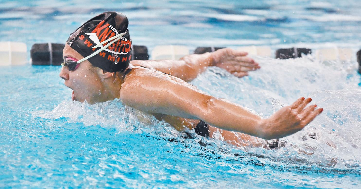 Hempfield’s Anna Kroger set the pace in the 100 Butterfly, swimming a 1:11.89 to win the event and add eight points to the Black Knights’ 116-49, Section One win over Warwick, January 12 at Hempfield Rec Center.