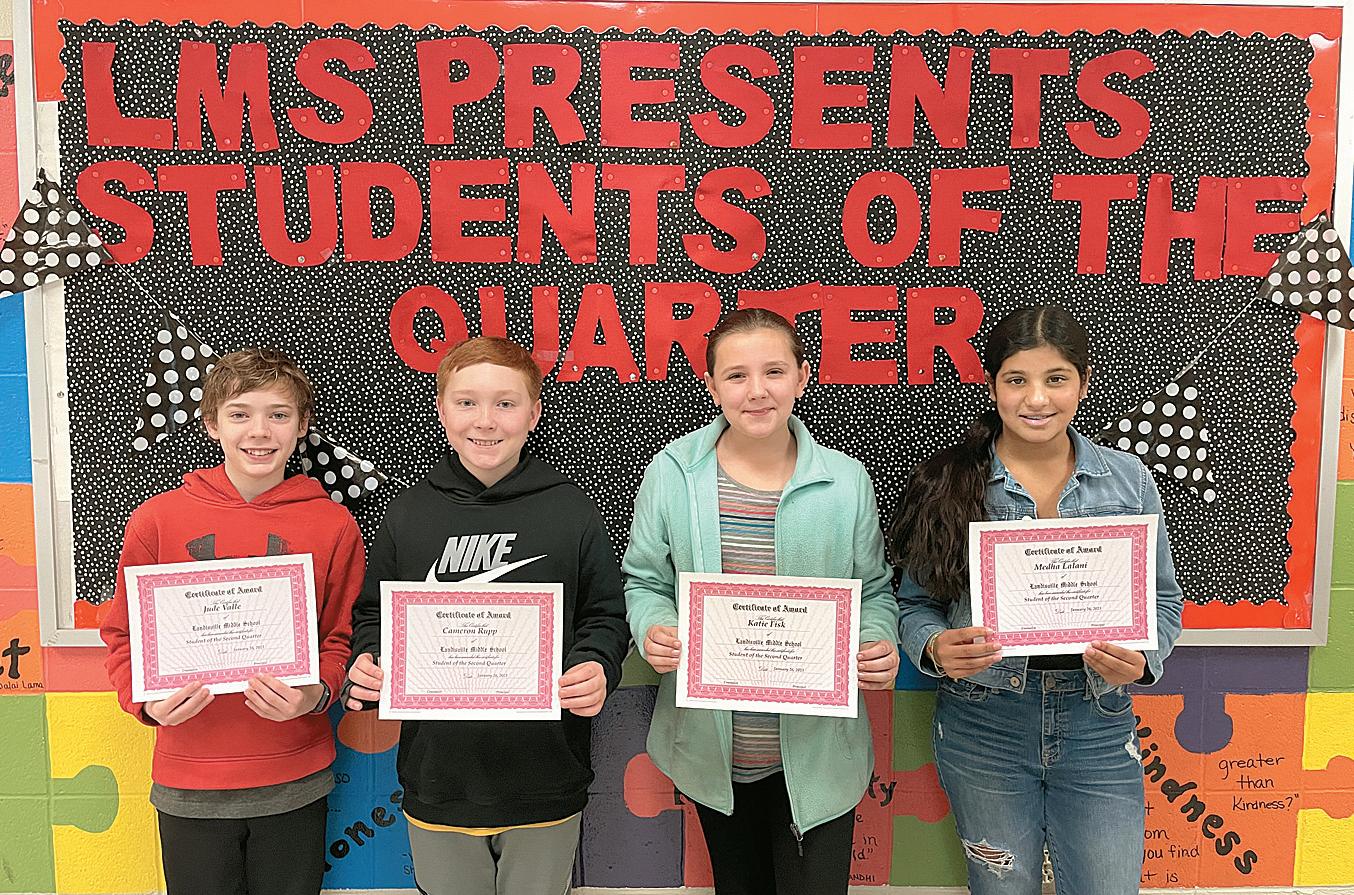 Eighth-grade Students of the Second Quarter at Landisville Middle School are (from left) Theo Barton, Mara Moser, Emma Keller and Luke Bahling.