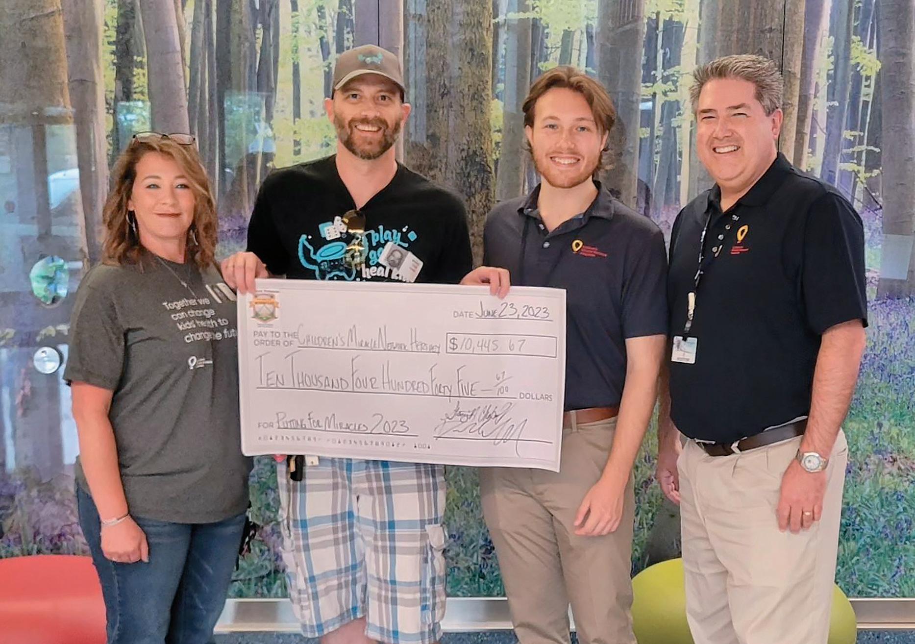 David Chobanoff (second from left) and his wife, Stacy Chobanoff (far left), presented a donation check to former Children’s Miracle Network employee Max James (second from right) and Penn State Children’s Hospital operations director Gil Pak after last year’s fundraiser.