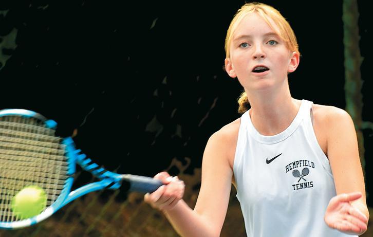 Hempfield’s Alex Gregory handled E-town’s Julia Laszakovits 6-0, 6-1, at number two singles to help the Black Knights to a 4-3, nonleague victory over the host Bears on September 15.