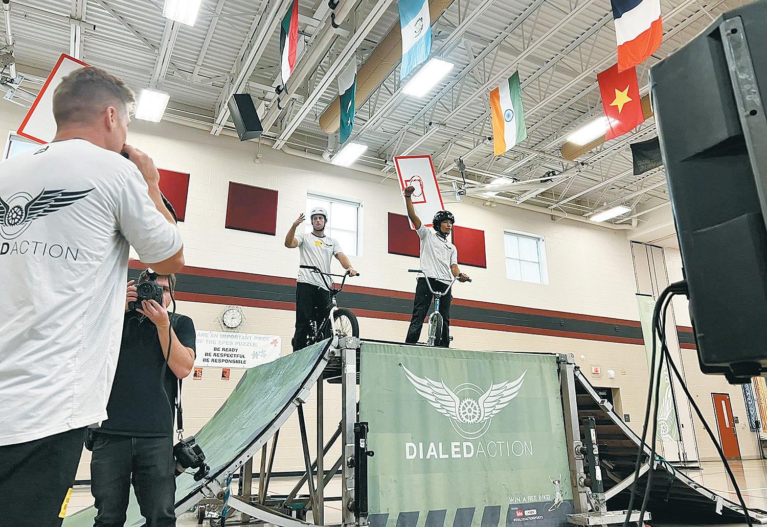 Dialed Action performs at a special reward assembly for the students at East Petersburg Elementary.