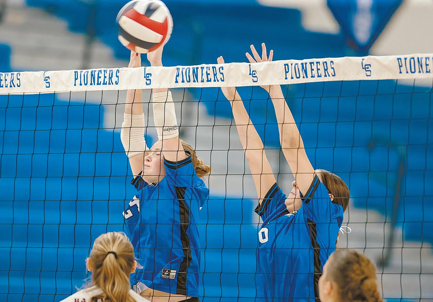 In Section Two play on Thursday, August 28, Lampeter-Strasburg’s Luda Lozada bumps a pass during a 3-0 loss against Manheim. Lozada had six digs against Central.