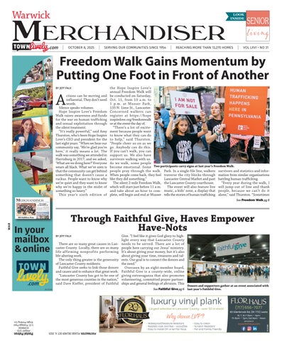 nonprofit organization chartered in 1966 for the benefit of area senior citizens age 50 and older. Meetings are generally held on the third Wednesday of every month, and the club also holds a summer picnic and yearly Christmas party as well as outings and trips. For more information, call Jill at 717239-1530 or visit www .facebook.com/groups/ strasburgseniorcitizens/.