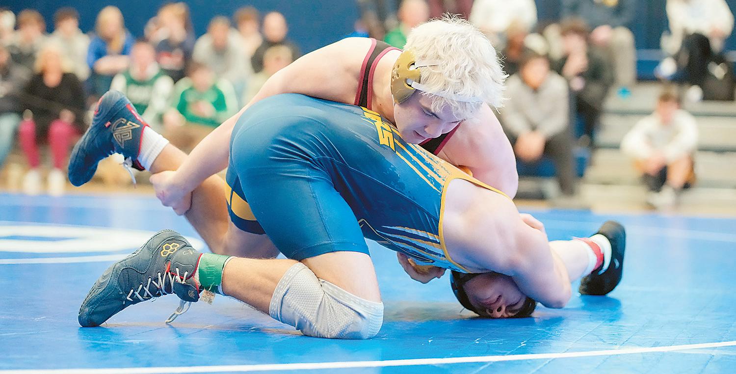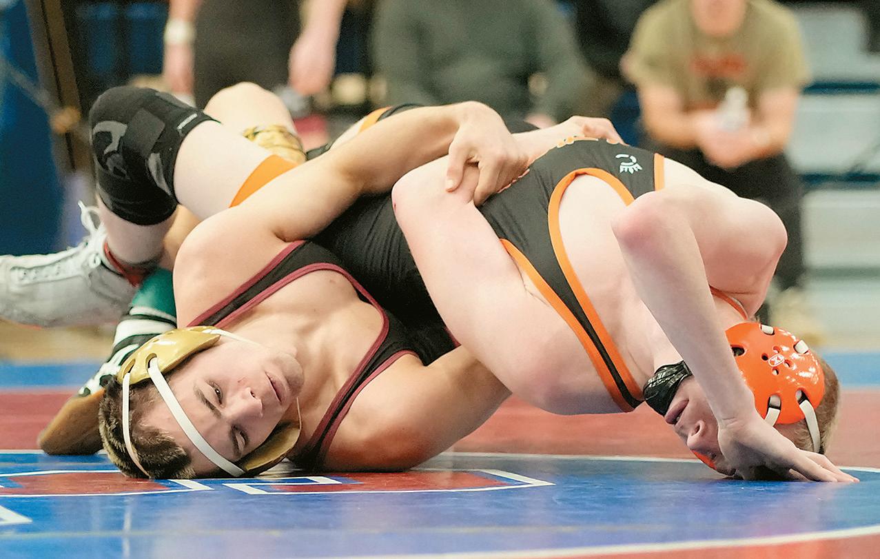 On Friday, February 20, Barons’ Barrett Keiffer (139) tries to pin Northeastern’s Austin Wompler during the PIAA District 3A Individual Championships held at Spring Grove. Keiffer placed third.