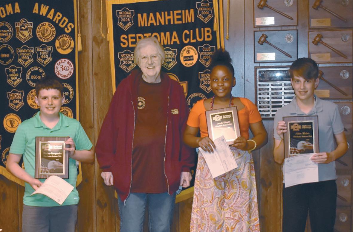 at Manheim Central Middle School. “The essay is to write what freedom means to them. It is not a history lesson, but how our freedoms affect their lives,” explained Donna Keller, Freedom Week committee chairperson. “The Freedom Week committee reads all the essays submitted and picks the three best ones.” The winners receive a cash prize and a plaque.