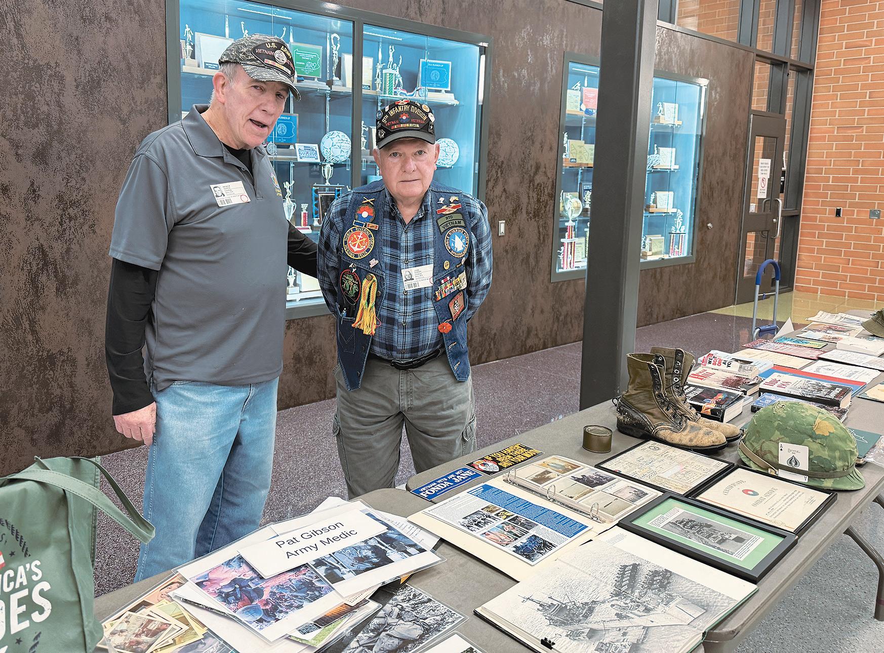 Veterans Patrick Gibson (left) and John Dobish with some of their Vietnam War memorabilia. Photo by Cat Shannon