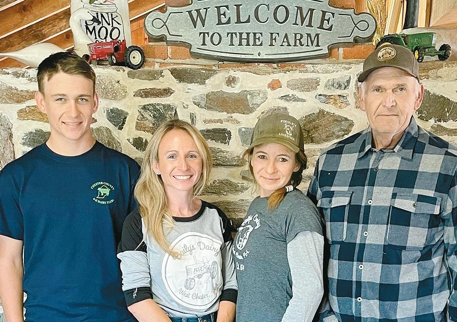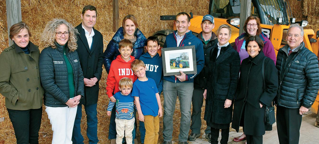 Jamie Hicks (sixth from right), the Chester County Farmer of the Year, celebrated his award with his family, the Chester County commissioners and members of the Chester County Ag Council.