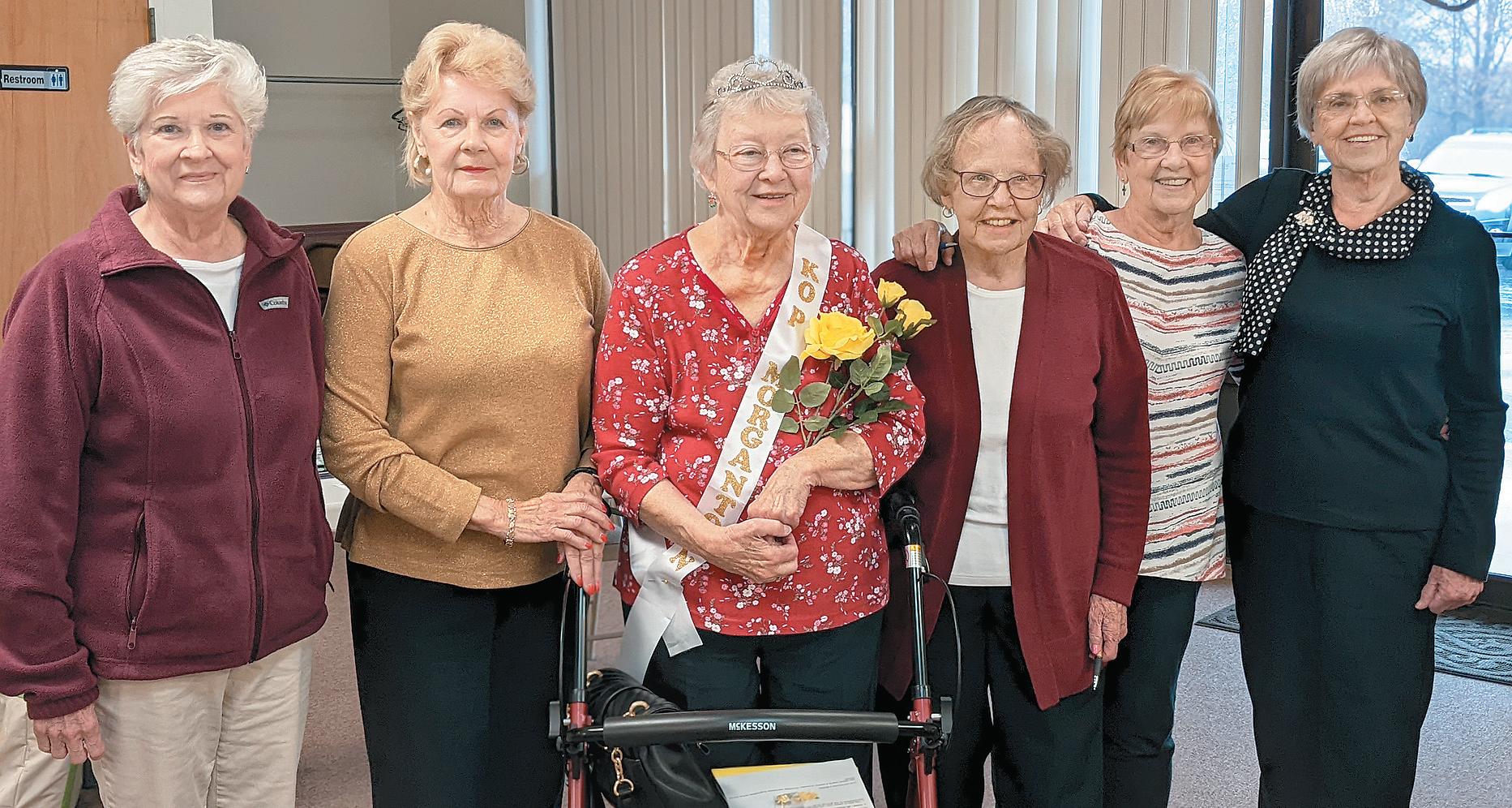 Myrna Duplessie (third from left), who received a KOPS (Keep Off Pounds Sensibly) award, is congratulated by other members who previously received the designation, including (from left) Emily Scheurun, Cookie Karaban, Joyce Arters, Joan Laudeman and Josie Davis.