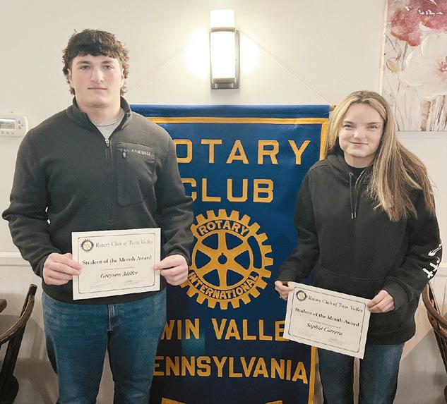 The Twin Valley Rotary Club has selected Twin Valley High School (TVHS) students Greyson Miller and Sophia Carrera as its Students of the Month for February.