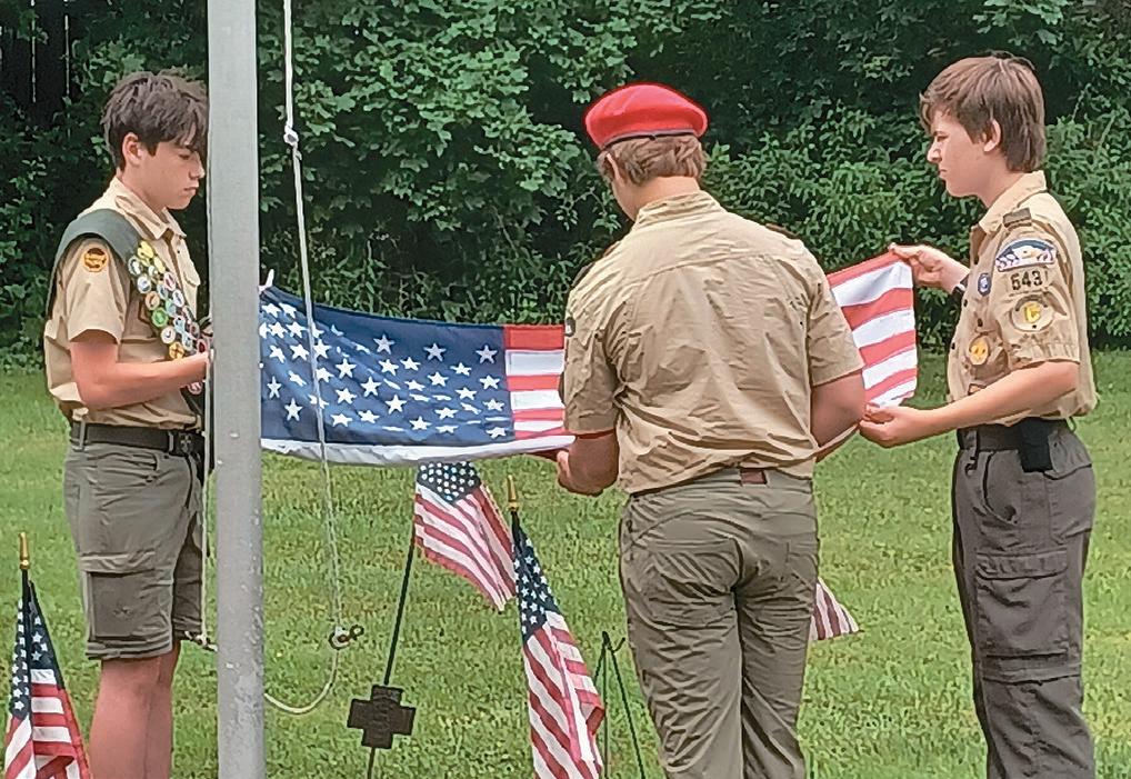 from Col. Jacob Morgan American Legion Post 537, Morgantown. Members of Elverson Boy Scout Troop 37 and Troop 543 from Plowville led a flag-folding ceremony. Alyssa McCaffrey, a member of Troop 543G, read the meaning of each of the 13 folds of the flag. “The flag-folding ceremony represents the same religious principles on which our country was originally founded,” she stated.