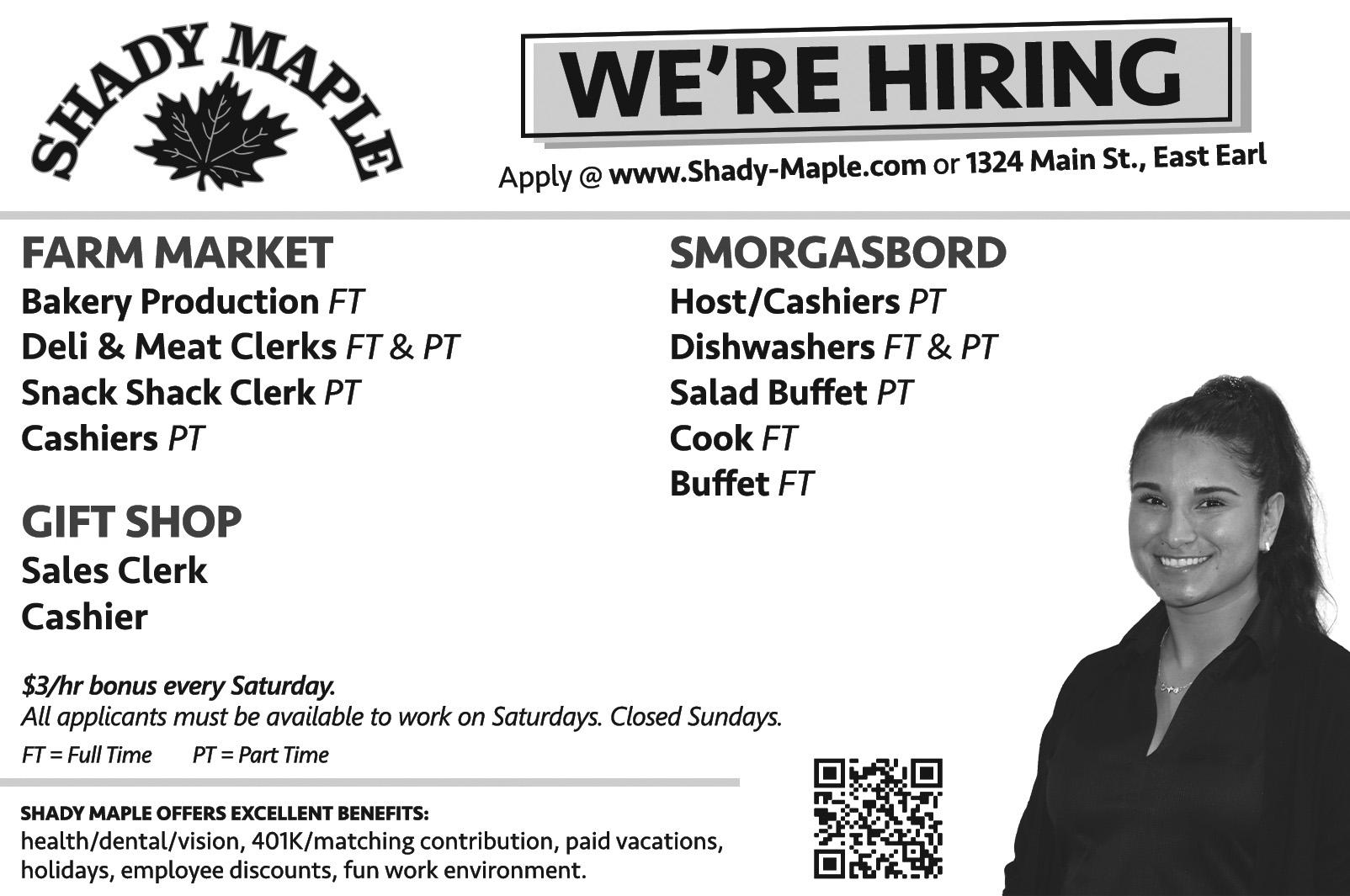 COMMUNITYCOURIER - Morgantown/Honey Brook Edition - October 5, 2022- 11townlively.com R088913 Great family business! Great company benefits! Love seniors? FT/PT KITCHEN/DINING HELP 5:30am-2:00pm Starts $13/hr. MORNING COOK $15-$17/hr. MEDTECH/RA’S Any Shift EOE Great benefits: PTO, 401(k), Medical, Dental, Vision, Aflac, Life Ins., Attendance Award - Earn Extra PTO Come in and fill out an application at: 2499 Zerbe Road Narvon, PA 17555 or go online at: zerberetirementcommunity.com $500 Signing$500 Signing Bonus! R087918 HELP WANTED • DRIVER/LABORER for Construction Crew Must be 18 years of age w/valid driver’s license. Honey Brook, PA 717-629-1268 Out-of-Town Work Occasionally. Competitive Wages. R087916