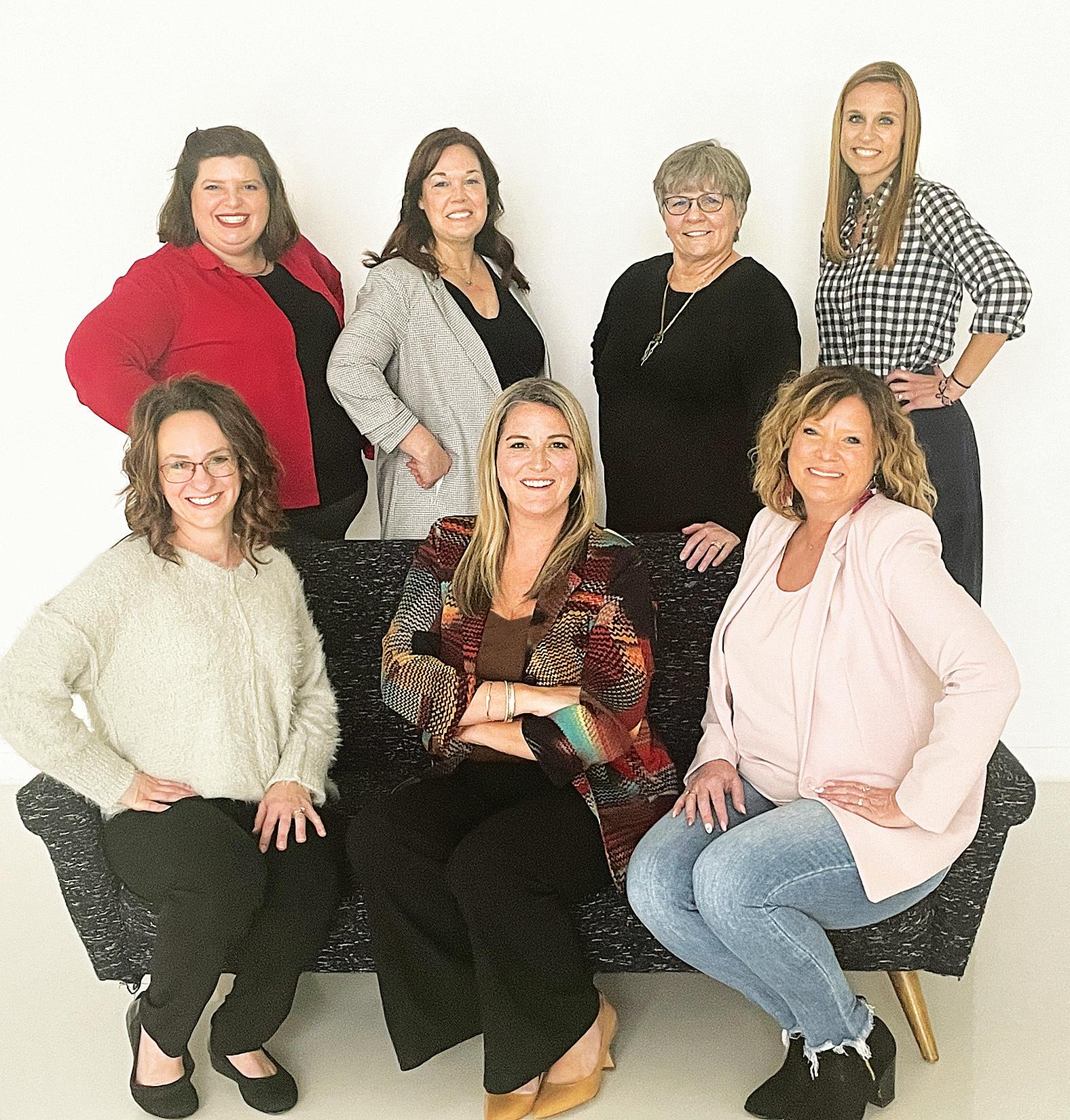 Leaders of the county’s Chambers of Commerce include (front, from left) Ashley Zell, Heather Valudes, Denise Grove, (back) Jona Green, Kristie Schmid, Kerry Meyers, Rebecca Branle, and (not pictured) Liz Ackerman.