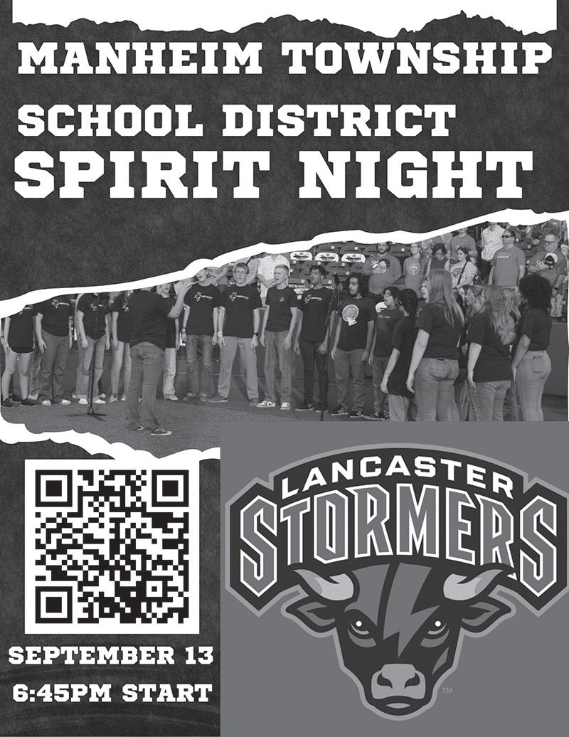 Penn Medicine Park, Lancaster Celebrate Manheim Township Spirit Night with the Lancaster Stormers! Reserve online at the QR Code above or request a voucher from your student’s building secretary. Gates open: 5:45 PM | Game begins: 6:45 PM. Enjoy performances by our MT Spanish Immersion students and the Troubadours. Wear Blue Streak colors and show your school pride!