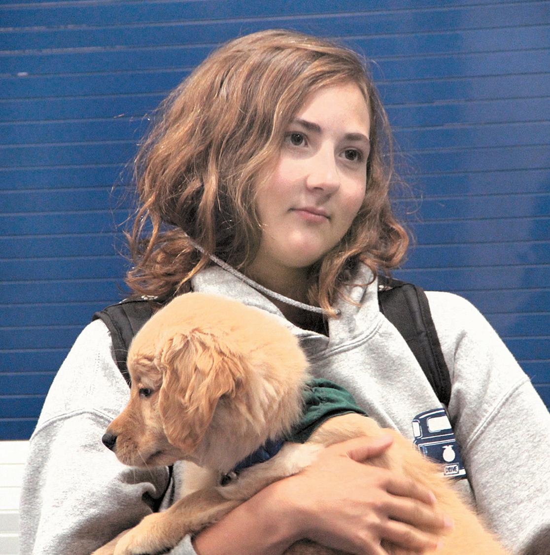 Mya Ellis, a resident of Elizabethtown, with Tucker, a golden retriever