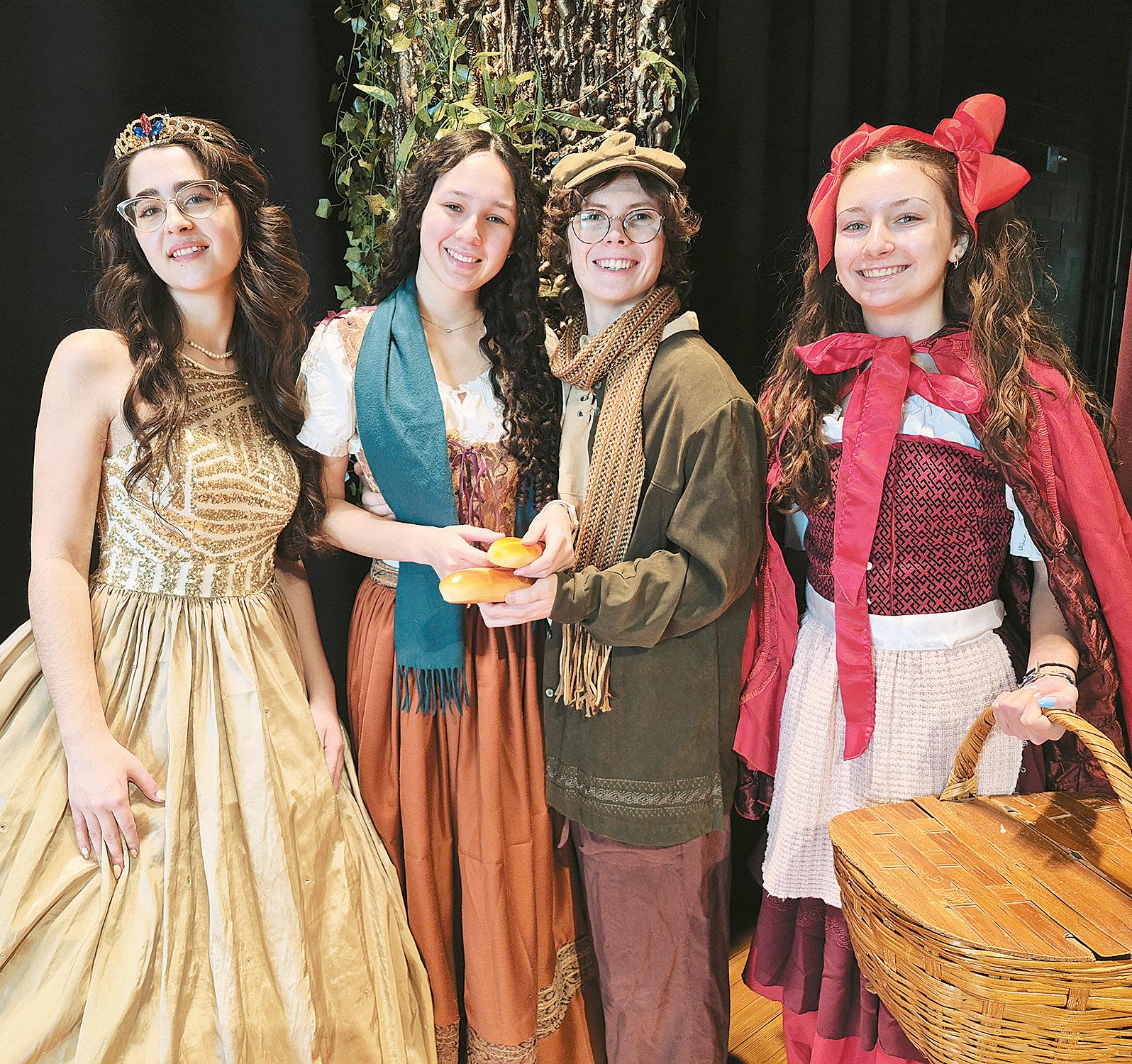 The cast includes (from left) Sophia Rothenberger as Cinderella, Eva Elboubkri as the baker’s wife, Andrew Blomiley as the baker and Lauren Bierlein as Little Red Riding Hood. Photo by Francine Fulton