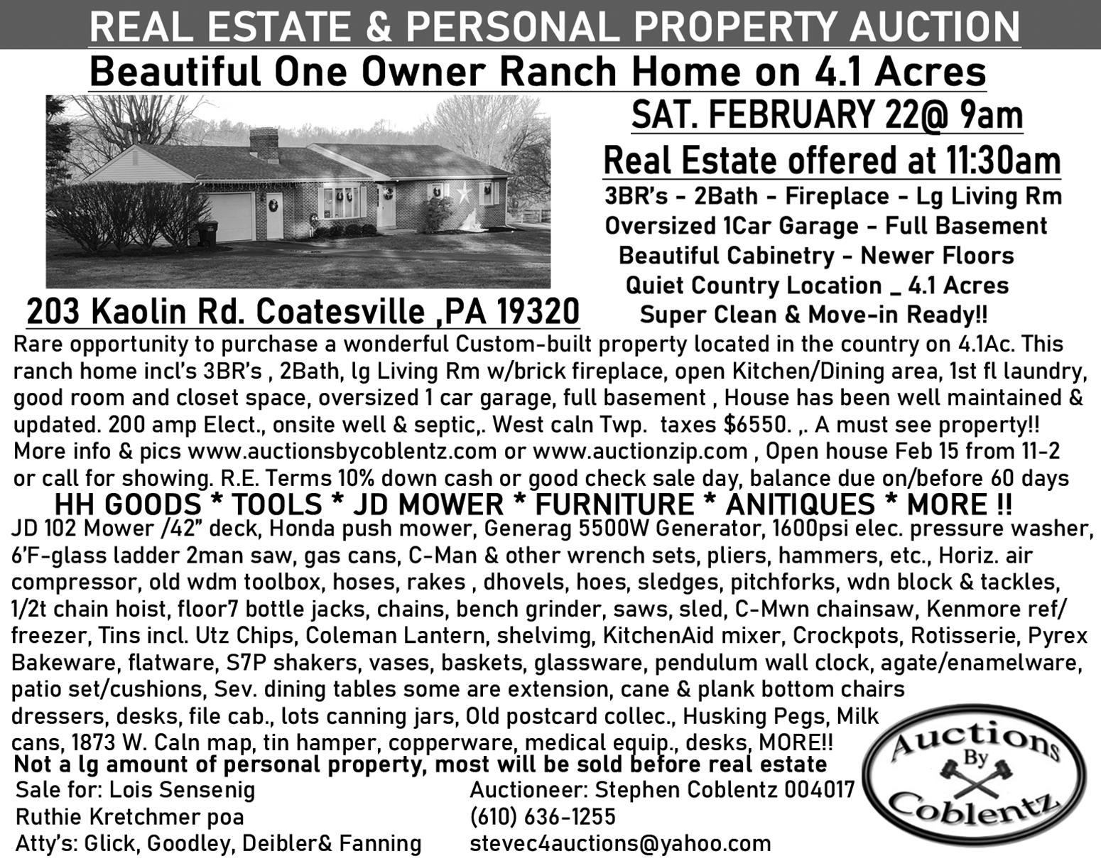 EQUAL HOUSING OPPORTUNITY All real estate advertised in this publication is subject to the Federal Fair Housing Act and the Pennsylvania Human Relations Act which makes it illegal to advertise a preference, limitation or discrimination based on race, color, religion, ancestry, sex, national origin,